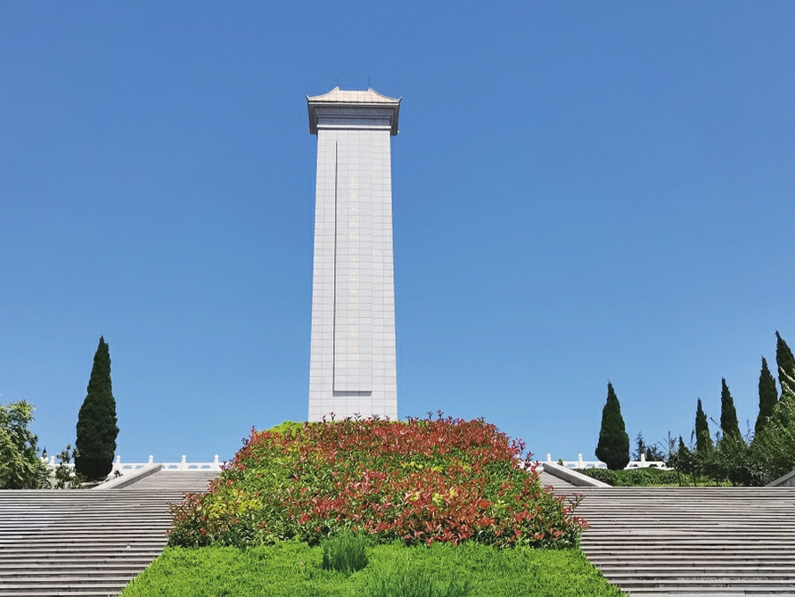 鲁南人民抗日武装起义纪念碑位于山东省滕州市大坞镇仁山村北侧的滕州市烈士陵园内,是国家级烈士纪念设施。纪念碑高38米,寓意滕、沛、峄三县抗日武装起义及鲁南人民抗日义勇总队成立的时间是1938年。纪念碑正面是滕州籍曾参加抗日武装起义的老战士、解放军原总政治部联络部部长杨斯德题写的碑名“鲁南人民抗日武装起义纪念碑”,背面的底座上镌刻着中共滕州市委、滕州市人民政府撰写的《抗战英烈丰碑长存》碑文,全文如下(标点为引者所加):