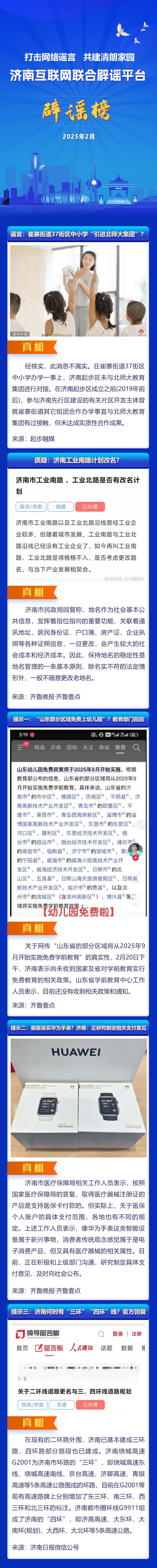 济南互联网联合辟谣平台2025年2月辟谣榜单