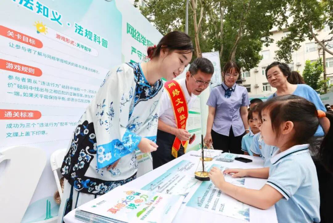 活动现场,网络举报辟谣知识闯关环节吸引了广大群众踊跃参与。该环节中,乐山小区内道路两侧设置了以“仁义礼智信”为主题的五个展板区,每个展板区融合了古风文化元素,通过互动游戏的形式向居民介绍了网络举报辟谣工作的重要意义、相关法律法规、网络举报受理渠道范围和举报方式、涉企网络侵权举报知识等,还普及了网络谣言特征和传播规律、识谣辨谣方法技巧,同时介绍了山东省互联网违法和不良信息举报中心、山东互联网联合辟谣平台“两微一端”账号,以及山东省网络举报辟谣宣传优秀作品、网络监督员登记注册方法等。每个互动游戏都凸显趣味性和教育意义,让居民们在轻松愉快的氛围中学习到了网络举报、辨识谣言的实用技能。