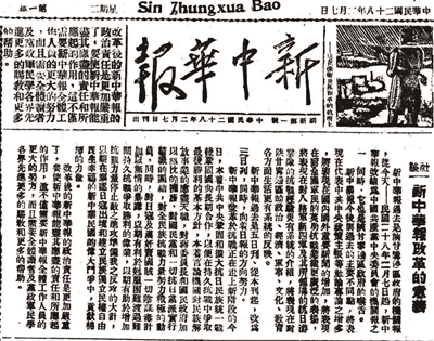 1939年出版的《新中华报》“刷新第一号”。资料照片