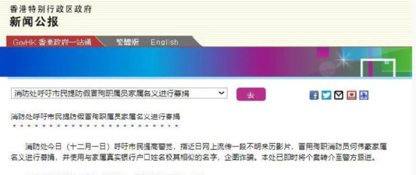 紧急提醒!有人冒用香港殉职消防员家属募捐