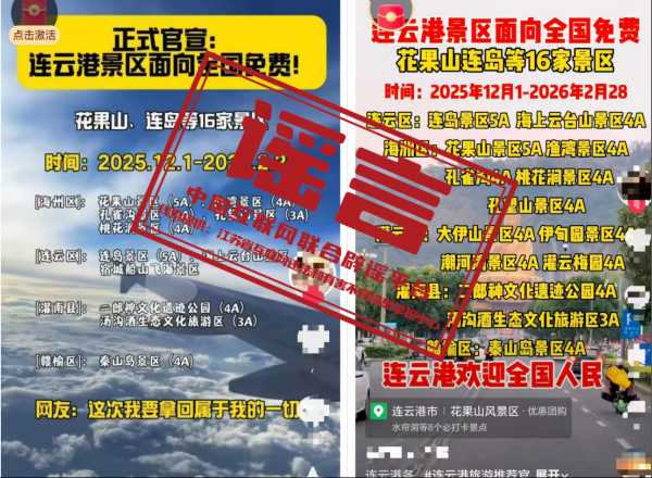 江苏连云港景区“2025年12月1日至2026年2月28日面向全国免费”?