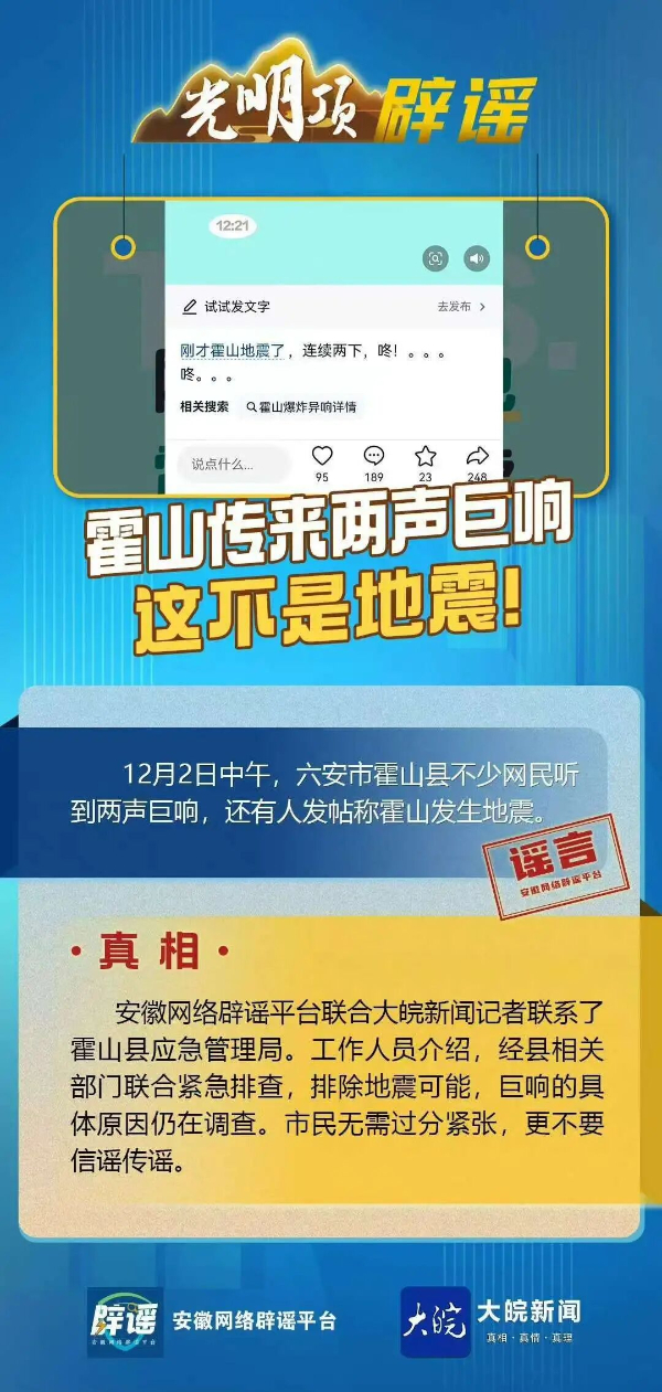 安徽霍山传来两声巨响 这不是地震!
