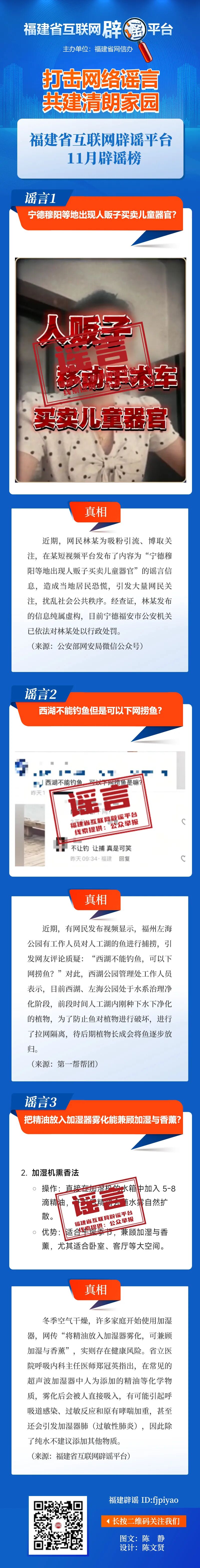 打击网络谣言 共建清朗家园 福建省互联网辟谣平台11月辟谣榜