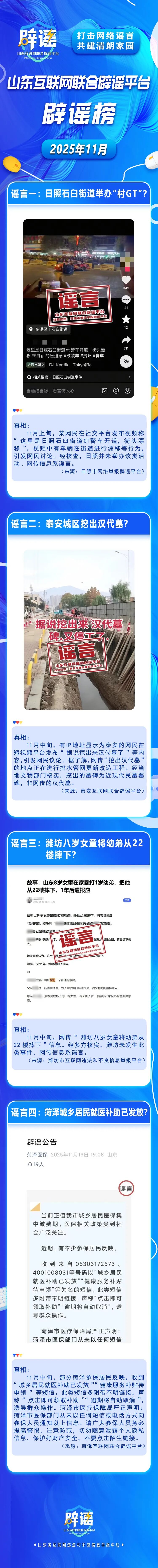 山东互联网联合辟谣平台2025年11月辟谣榜发布