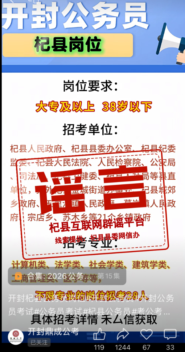 网传“杞县2026年公务员招录岗位已明确”?