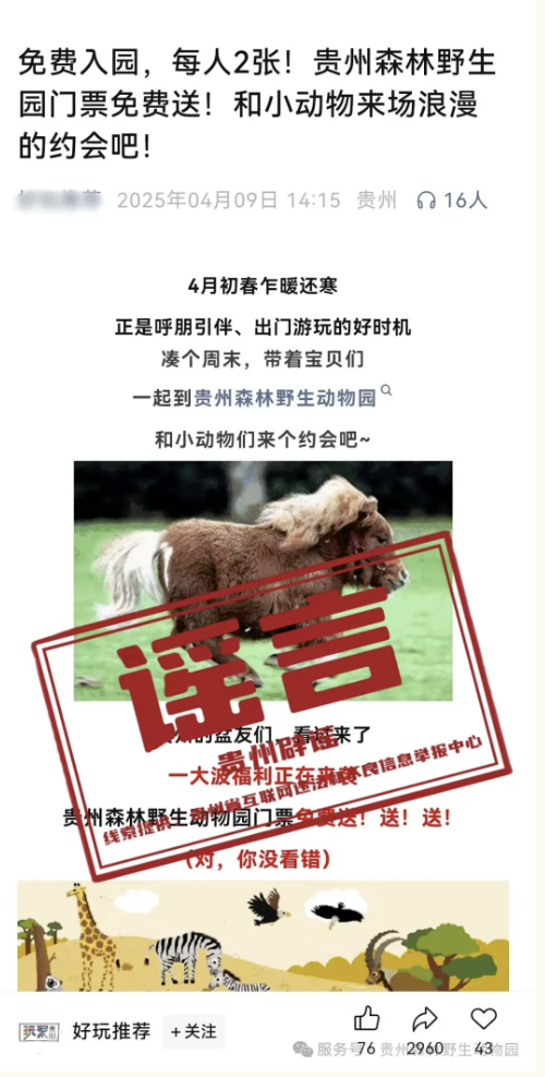 免费入园?每人2张?贵州森林野生动物园紧急辟谣
