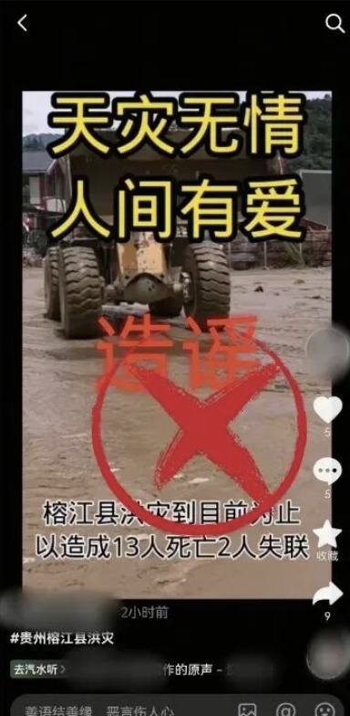 贵州辟谣提醒:灾情无情人有情,借机生谣不可行。