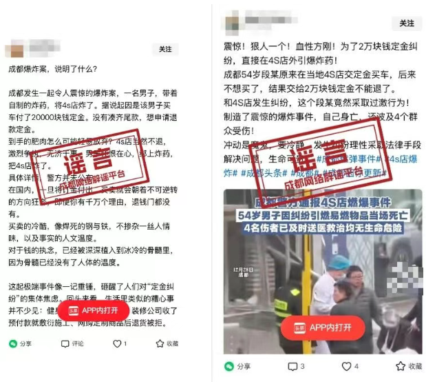 成都警方再通报“男子4S店外引爆易燃物”,查处2名造谣者