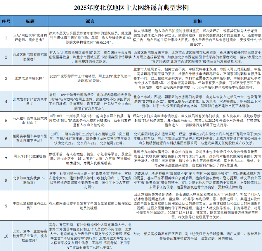 警示!2025年度北京十大网络谣言典型案例全拆解