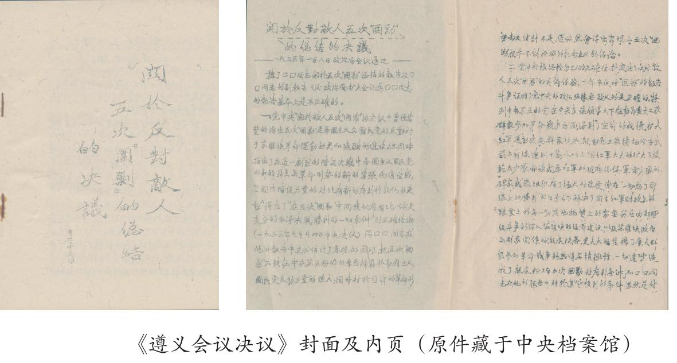 1935年1月15日至17日,中共中央在贵州遵义召开政治局扩大会议,系统总结了第五次反“围剿”和长征初期的经验教训,集中全力解决了当时具有决定意义的军事和组织问题。事实上确立了毛泽东同志在党中央和红军的领导地位,从而在最危急关头挽救了党、挽救了红军、挽救了中国革命。《决议》产生于中国革命生死存亡的紧要关头,它不仅从军事上纠正了错误路线,更在政治上确立了实事求是原则,在组织上恢复了民主集中制传统,成为统一全党全军思想、明确军事政治方向的纲领性文献。