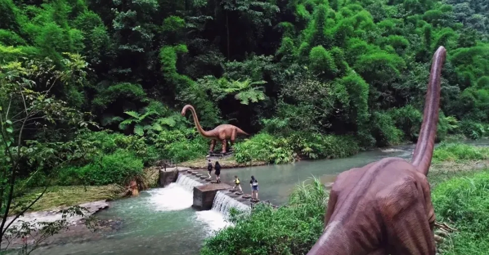 他同时表示:“犍为是‘中国桫椤之乡’,景区内桫椤树超54万株,而桫椤树正是中生代侏罗纪时期植食性恐龙的主要食物来源。”张祥解释:“景区打造侏罗纪探险谷的初衷,就是依托这片植物活化石资源,通过仿真恐龙、化石模型等景观,让游客沉浸式感受远古生态场景。”