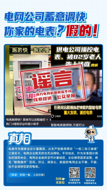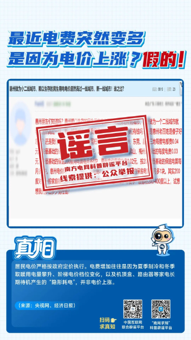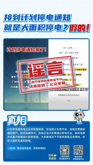 在“3·15”国际消费者权益日到来之际,南方电网科普辟谣平台“南网求知”与中国互联网联合辟谣平台联合发布八大典型电力谣言,帮助广大群众远离谣言误导、维护自身权益。