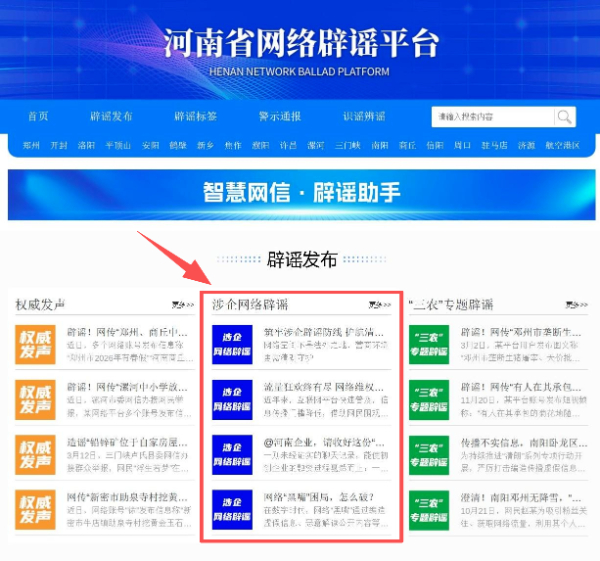 河南“涉企网络辟谣专区”正式上线