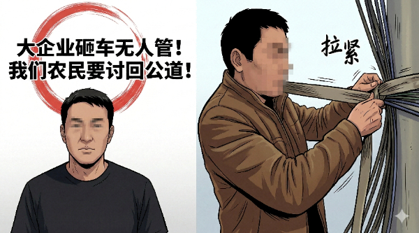 歪曲事实:通过剪辑拼凑现场画面,散布“大企业砸车无人管”“非法占用村集体土地”等严重失实信息。