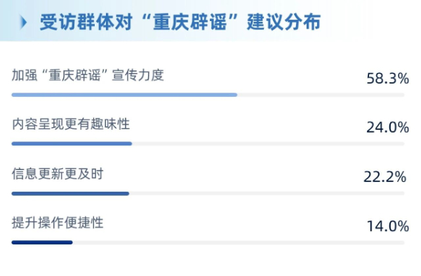 基于调查结果,“重庆辟谣”将从三方面优化升级,全面提升覆盖面与影响力: