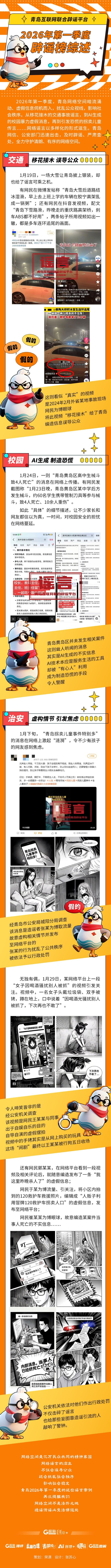 “AI生成”制造恐慌、“移花接木”误导公众——青岛互联网联合辟谣平台2026年第一季度辟谣榜综述