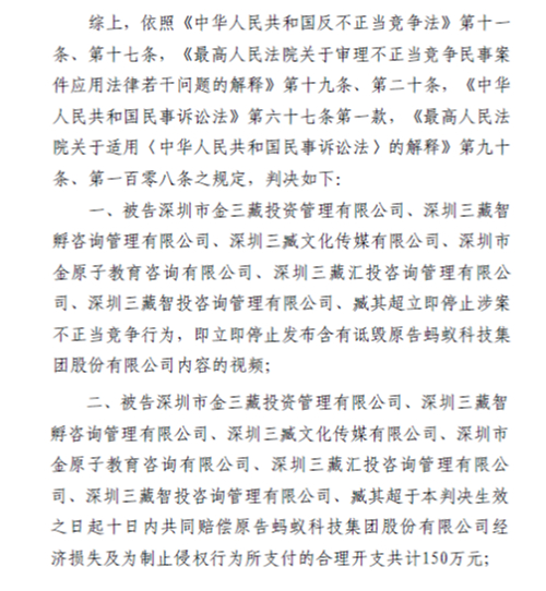 自媒体恶意诋毁蚂蚁集团 被法院判赔150万元