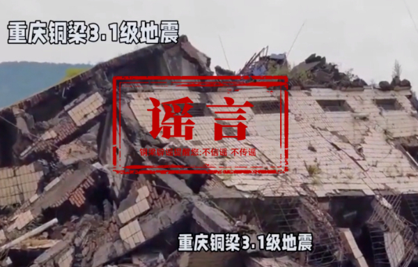 4月14日,有网民发布重庆市铜梁区地震相关内容,其中配图、视频系拼接剪辑,与当地实际情况严重不符,相关信息不实。