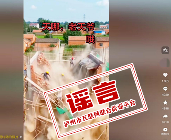 近日,四川泸州网警巡查发现,一网民在某短视频平台发布了一段视频,内容为“合江县一处楼房建设过程中突然倒塌,多名工人坠落”,迅速引发关注,有网民表示担忧和恐慌。
